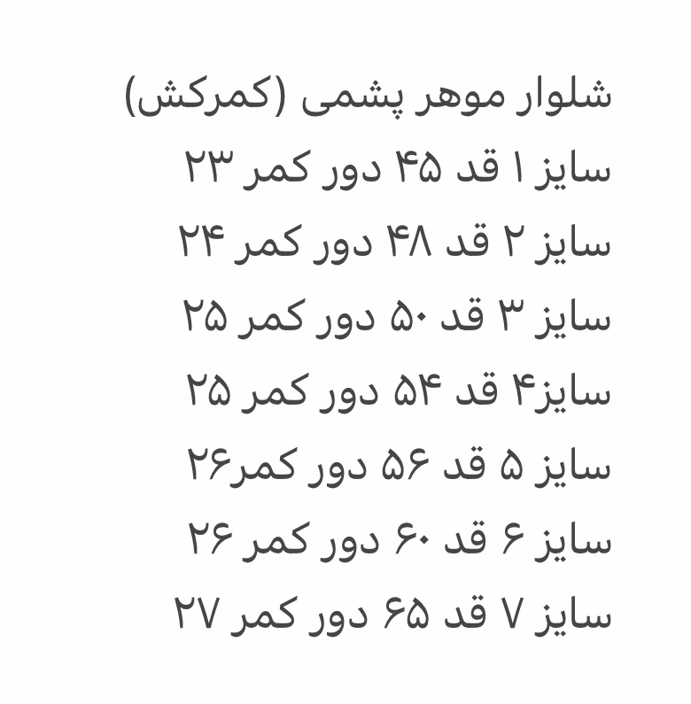 سایز ۶ قد ۶۰ دور کمر ۲۶
