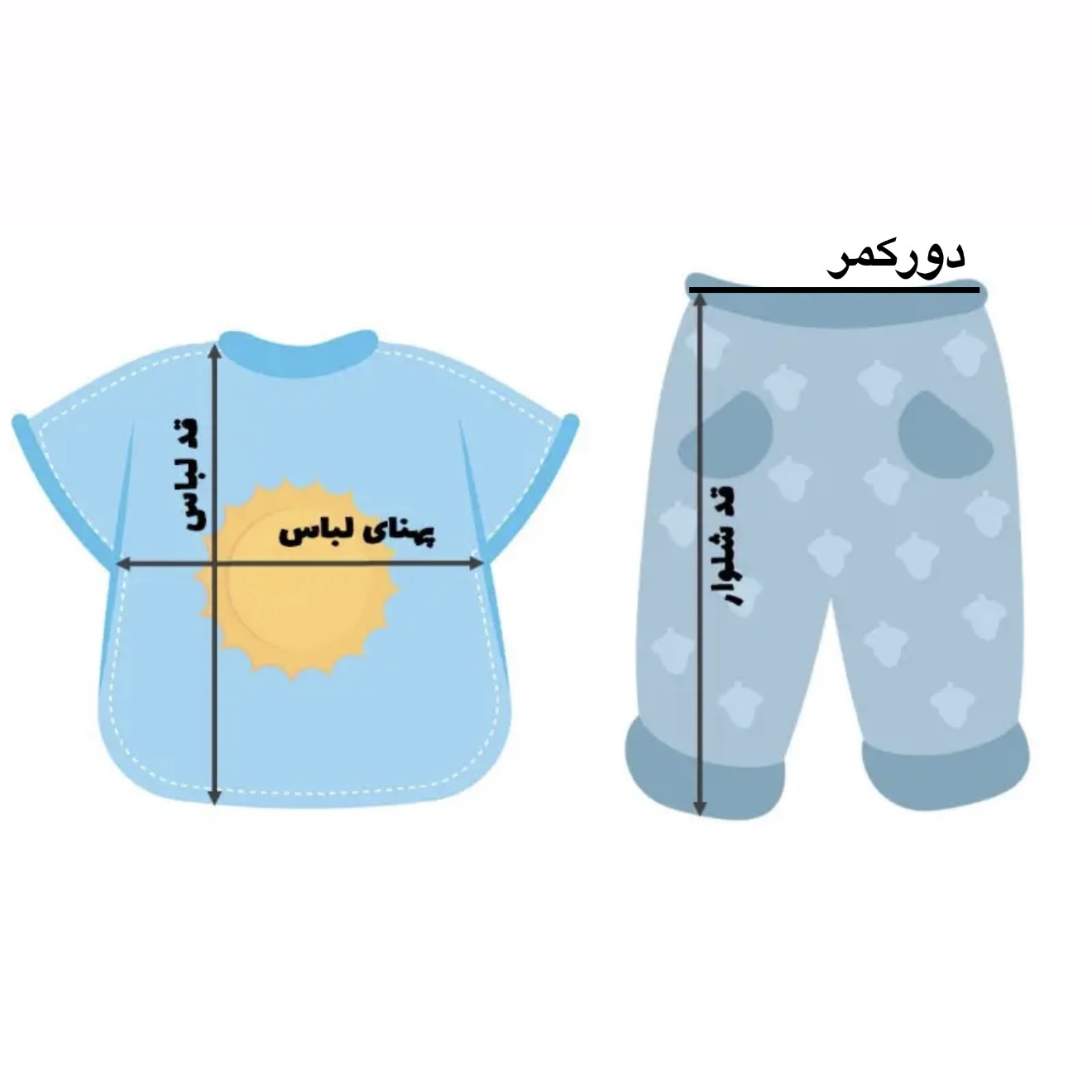 لطفا برای انتخاب سایز دقیق از روی یکی از پیراهن های گل پسرتون اندازه بزنید مطابق تصویر ک براتون گذاشته شده از لبه یقه تا پایین قد کار و از زیر بغل تا زیر بغل پهنای کار